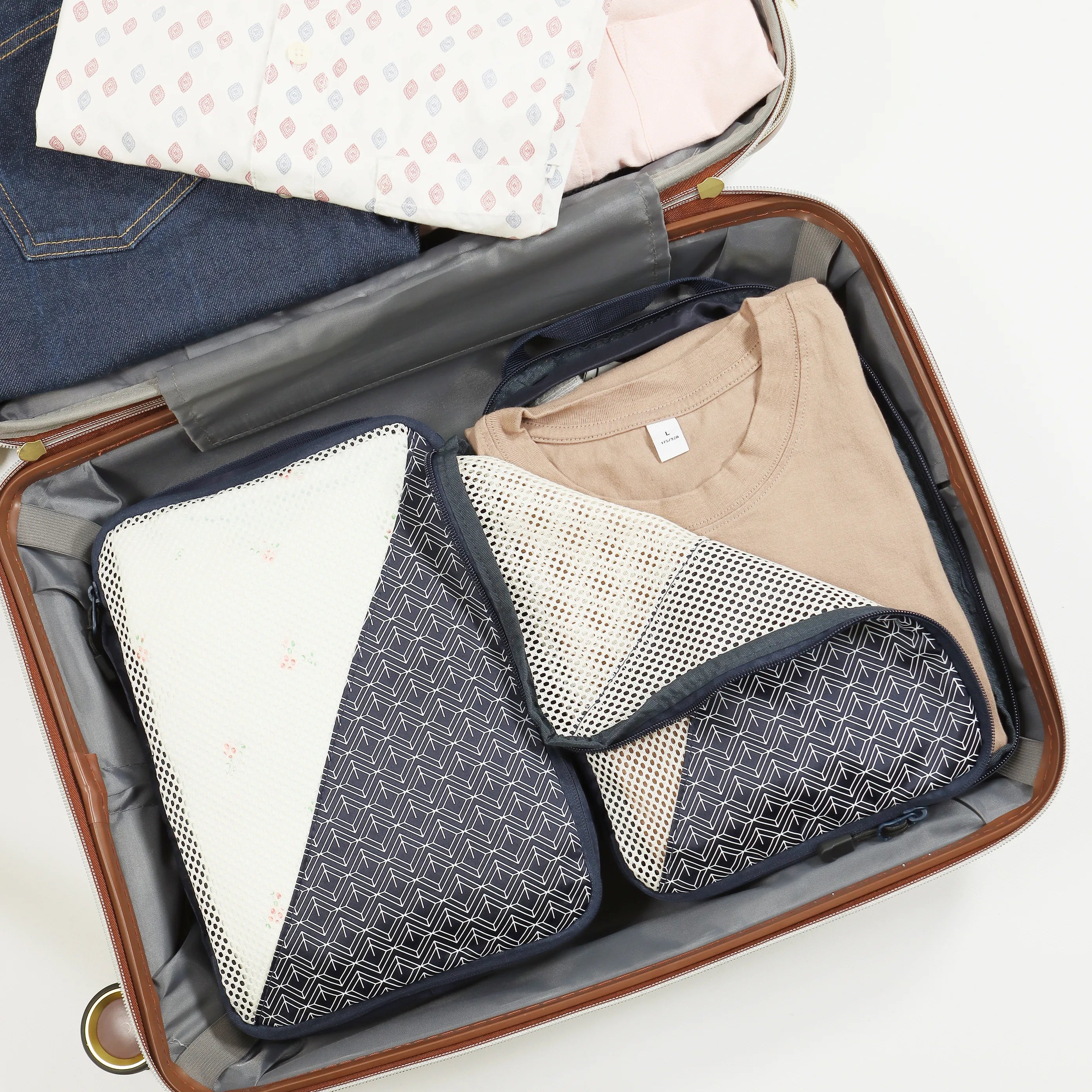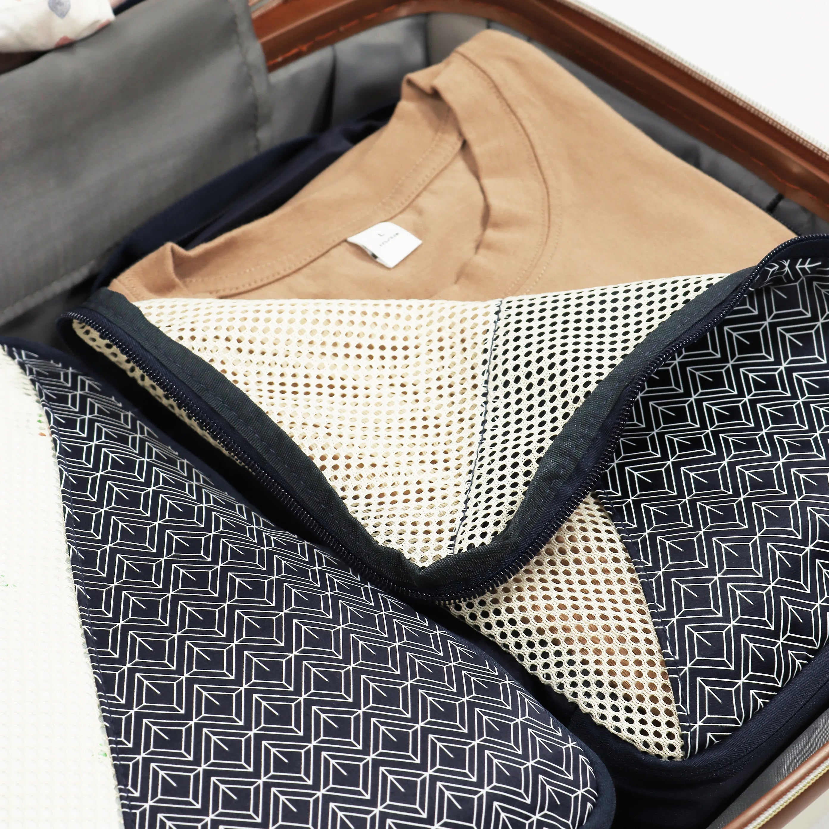Perfect for carry-on luggage, weekend trips, and gym bags, this compact cube organises underwear, socks, and smaller clothing items whilst maintaining a slim profile in your bag. The innovative design minimises bulging when compressed, allowing effortless stacking with other packing cubes.