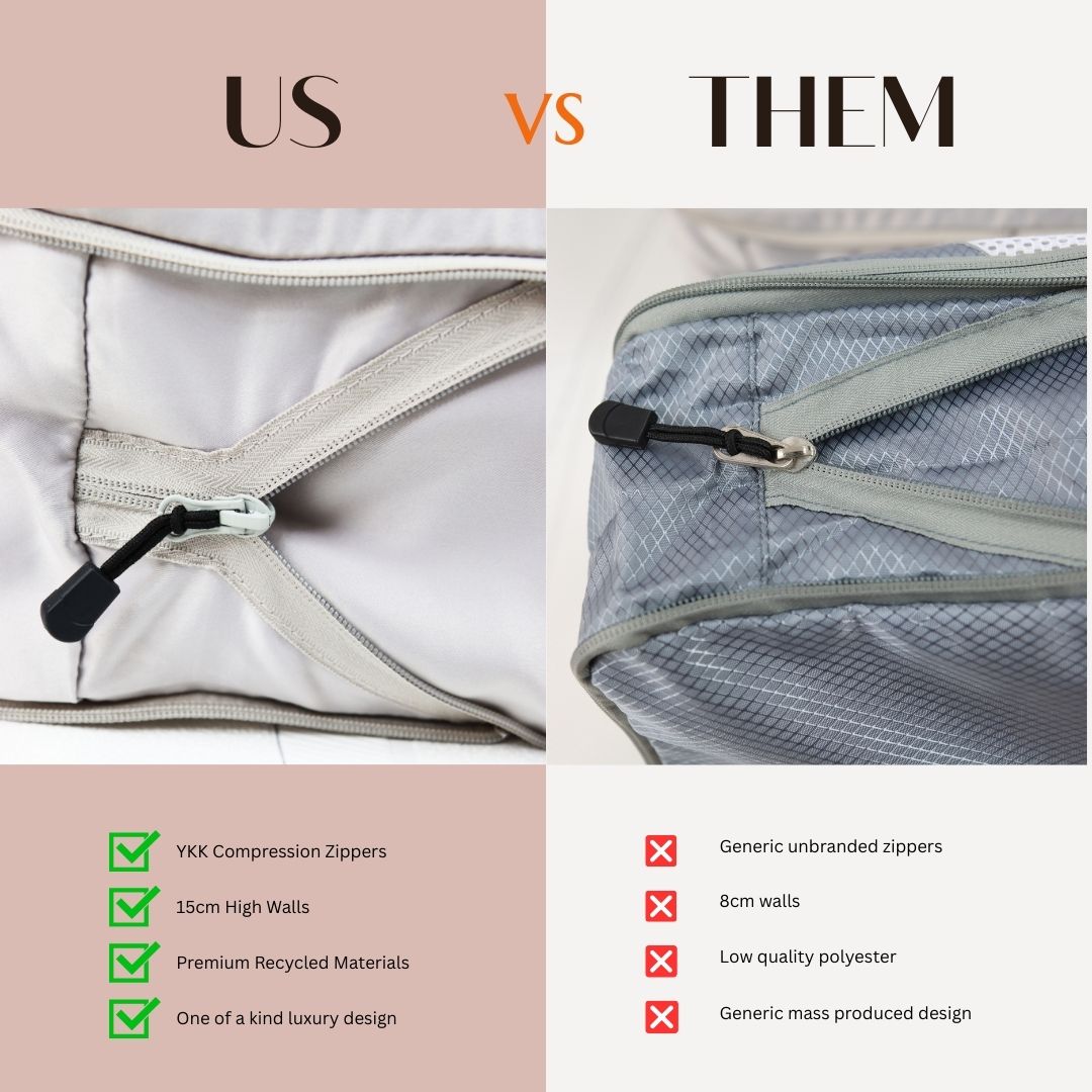 Seriously impressed with the zippers – they’re buttery smooth and feel super durable. The fabric is incredibly soft but seems like it’ll last forever. Can’t wait to use these on my next trip!