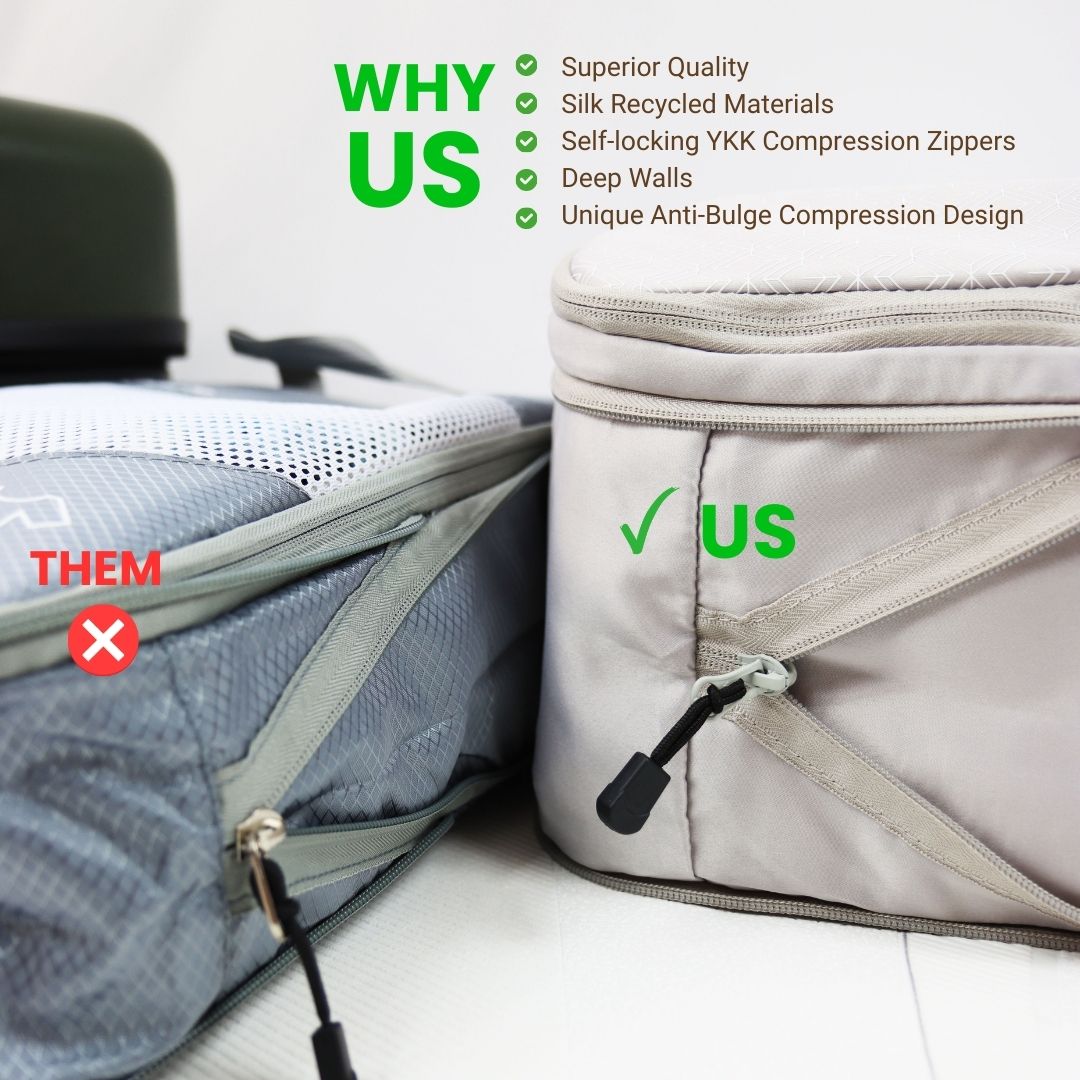 Optimize your packing with Caveri’s Medium Compression Packing Cube—durable, sustainable, and one of the top travel packing cubes designed to keep your luggage organized and compact.